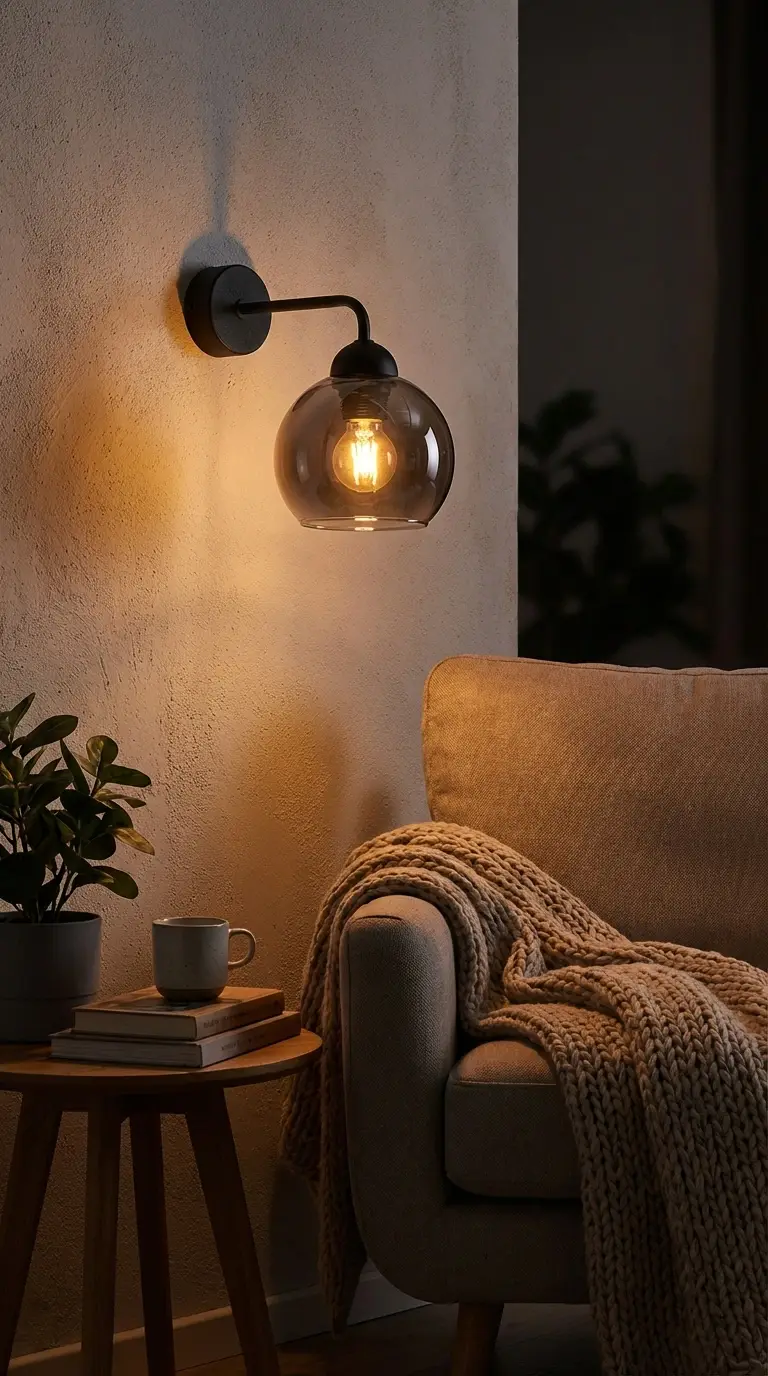 Le verre fumé agit comme un filtre naturel, adoucissant l’intensité de l’ampoule pour créer une lumière d’ambiance chaleureuse et non éblouissante.