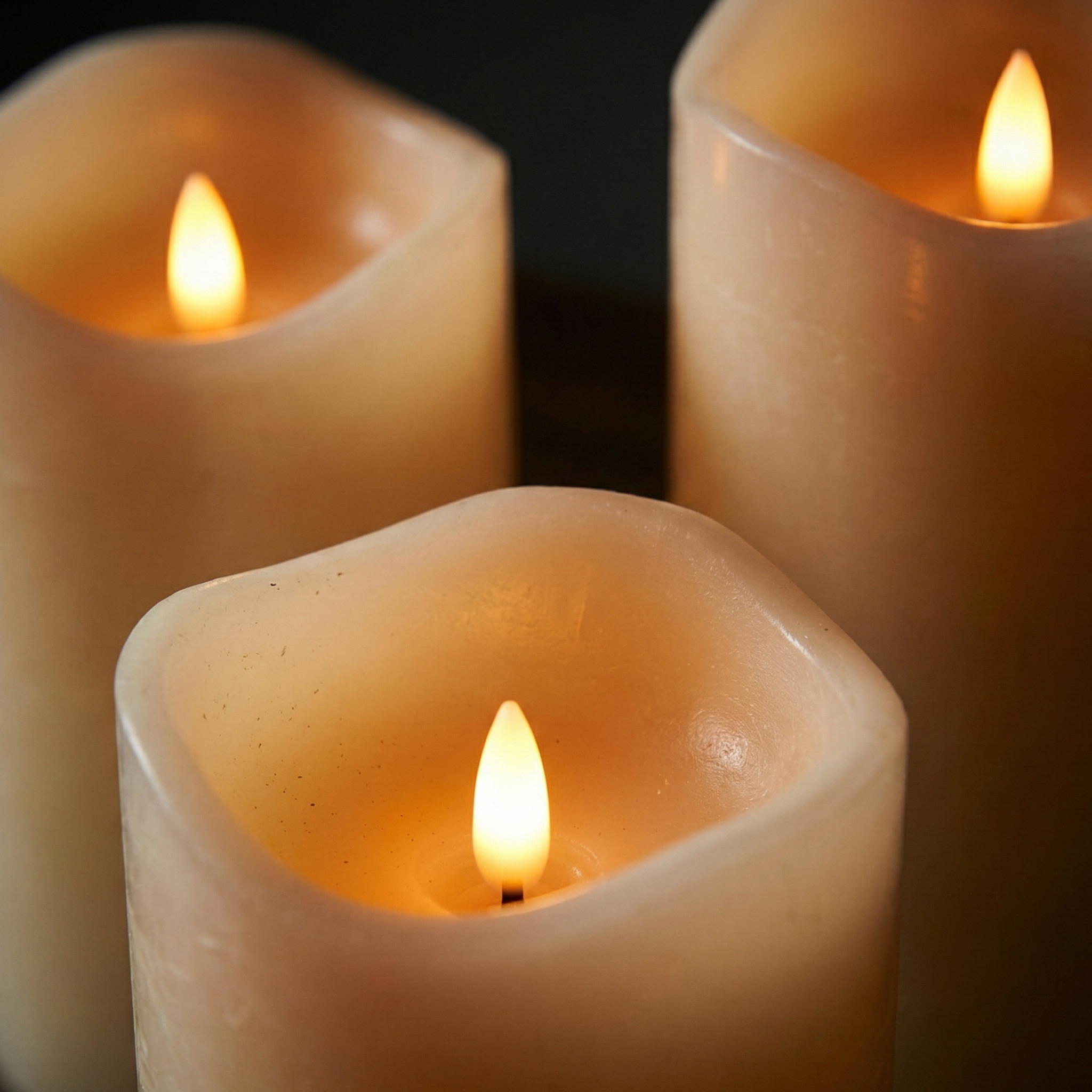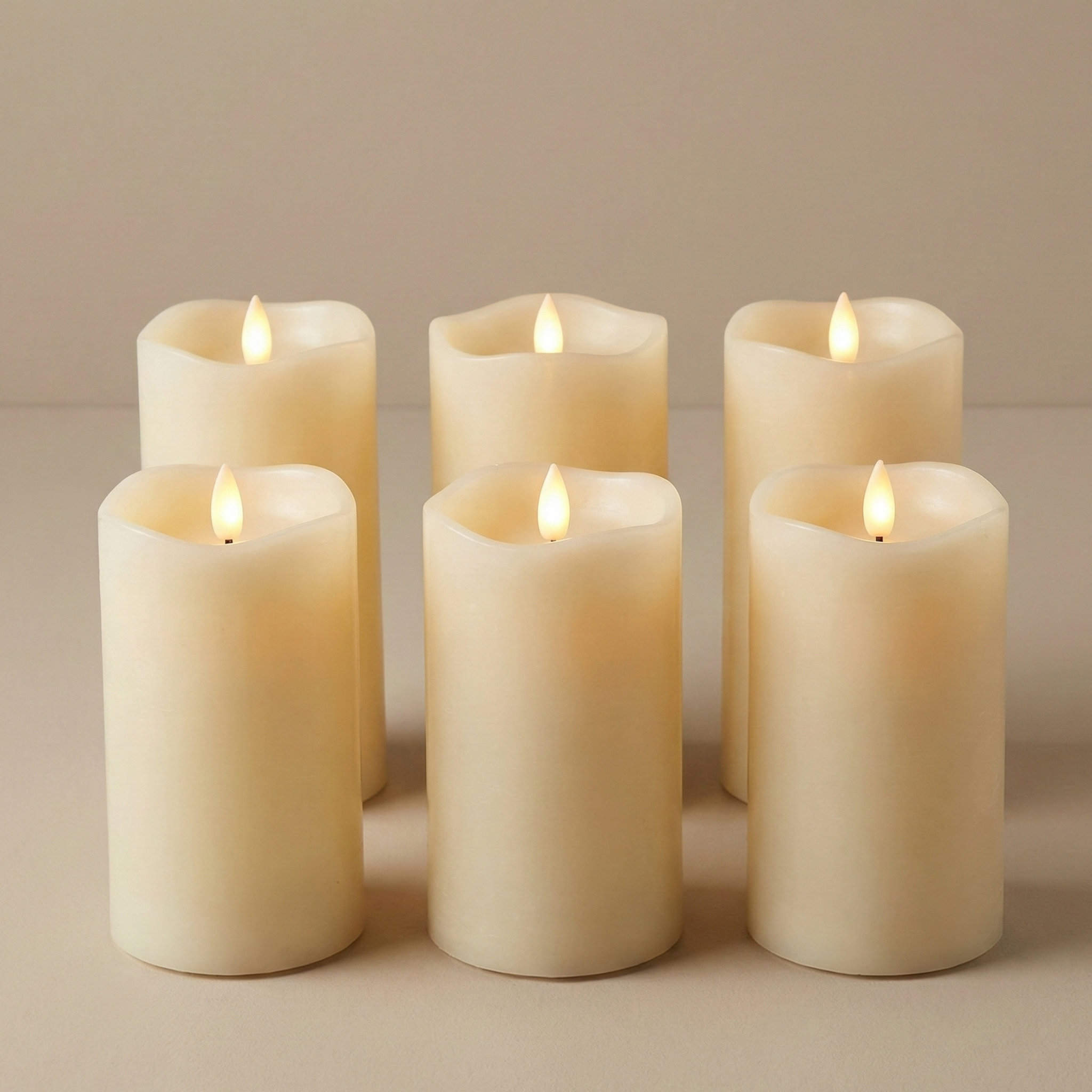 Bougie LED , au design élégant avec une finition ivoire, offrant une lumière douce et sécurisée pour une ambiance chaleureuse. Fonctionne avec des piles (non incluses)
